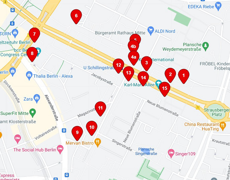 Unsere interaktive Karte geht online! Wir erarbeiteten für die ersten 15 Gebäude unseres Wohngebietes eine Übersicht mit wichtigen Informationen und erläuternden Fotos. Diese können auf unserer Homepage bei einem Klick auf die Karte abgerufen werden. So informieren wir über die Bau- und Entstehungsgeschichte des zweiten Bauabschnitts der Karl-Marx-Allee zwischen Strausberger Platz und Alexanderplatz. Sämtliche Beiträge wurden ehrenamtlich von Mitgliedern des Nachbarschaftsrates verfasst.