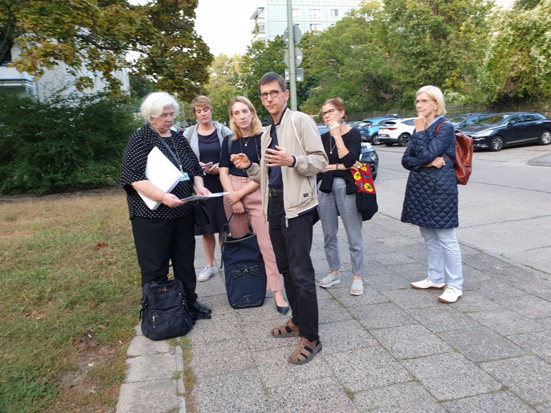 Frau Dr. Almut Neumann, Bezirksstadträtin für Ordnung, Umwelt, Natur, Straßen und Grünflächen, besucht uns zu einem Spaziergang. Wir treten in den Austausch über den Zustand der vorhandenen Grünflächen und deren notwendiger Umgestaltung für Klimaanpassung und Nutzungsänderungen. In einer Tour durchs Wohngebiet stellen wir ihr das Konzept für das Grüne Wohnzimmer vor und berichten u.a. über massive Eingriffe in das Biotop der Charlotte-Pfeffer-Schule sowie die Nutzungskonflikte bei der Wegenutzung.
