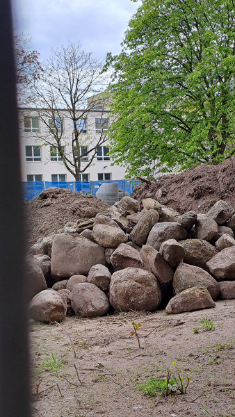 Diese historisch interessanten Feldsteine müssen unbedingt in unserem Wohngebiet bleiben. Möglichkeiten wären auf einem Spielplatz, vielleicht auch im angedachten „Grünen Wohnzimmer“ das gegenüber der Schule angelegt werden soll oder auch in einem neuen Biotop zum Nutzen für Vögel und Insekten. Für diese Vorschläge setzen sich der NBR und Bewohner unseres Wohngebiets ein. Diese Feldsteine haben neben ihrem historischen auch einen nicht zu unterschätzenden finanziellen Wert. Sie gehören der öffentlichen Hand, dem Bezirk Berlin-Mitte. Die Steine sollten bis zu ihrer Wiederverwendung auf einer öffentlichen Fläche vor fremdem Zugriff gesichert werden.